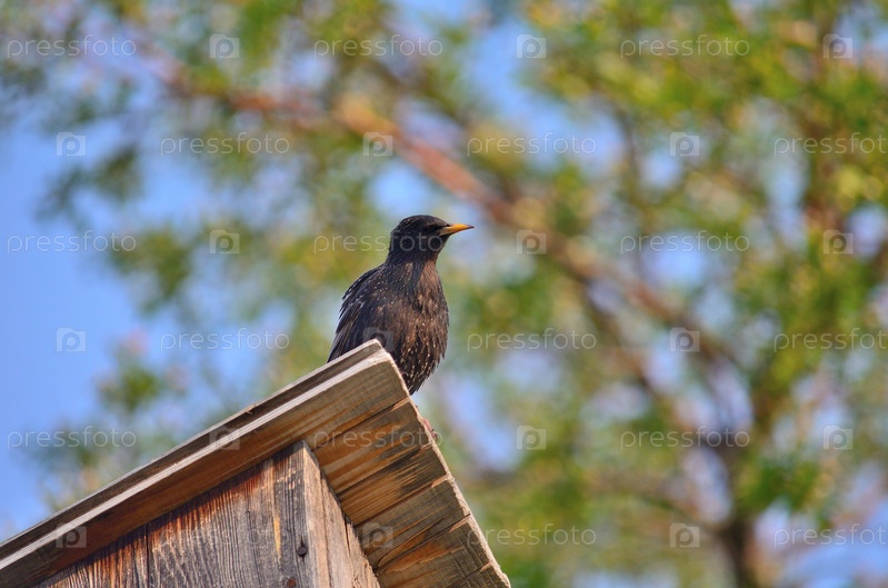 Скворец на скворечнике в Омской области России
