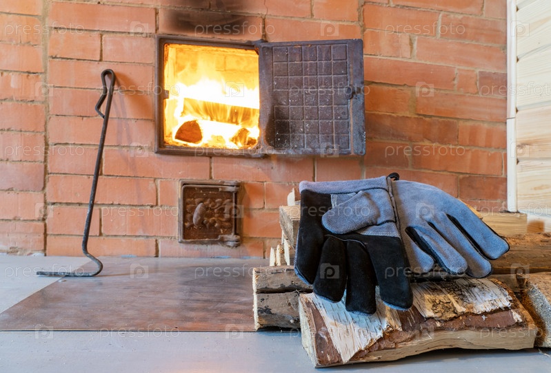Открытая дверца дровяной печи