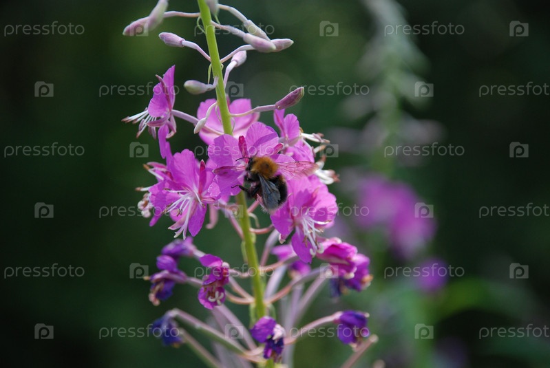 Пчела собирает нектар с цветов
