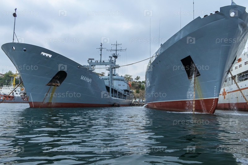 Крупный план серых кораблей Черноморского флота России в порту Севастополя. Корабль на страже мира. Республика Крым, 4 октября 2010 г
