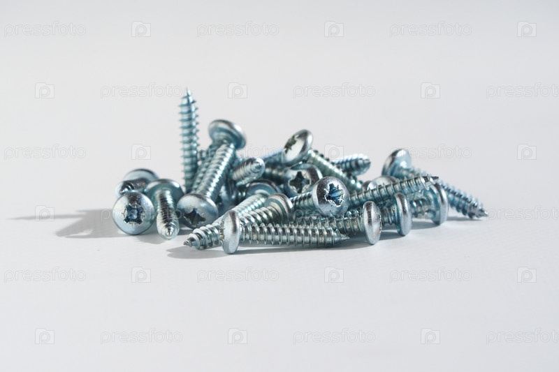 Хромированные винты типа PH на белом фоне. саморезачи