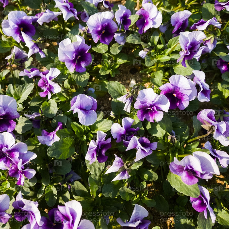 Красивые фиолетовые и белые анютины глазки в саду летом