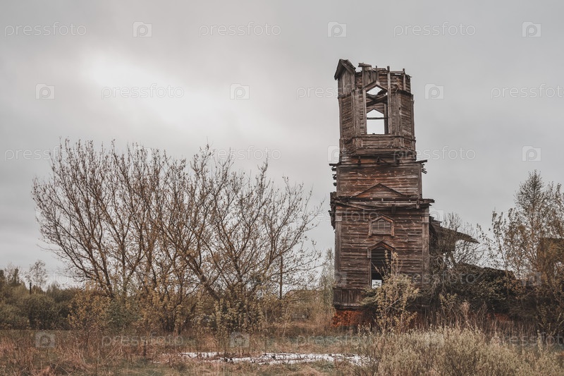 Заброшенная деревянная церковь, разрушенный деревянный храм, деревянная заброшенность