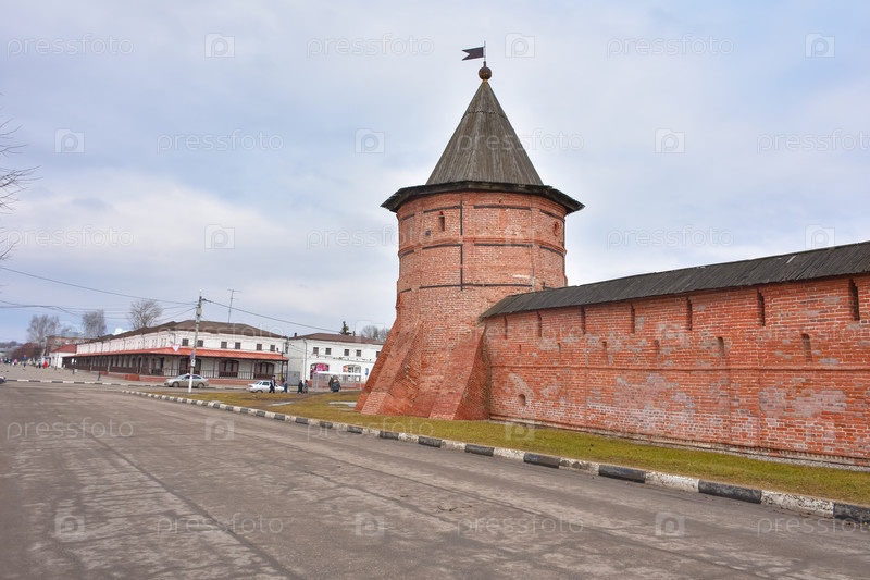 Юрьев-Польский / Россия - 7 марта 2020 г.: Стены и пруд в Михайло-Архангельском монастыре