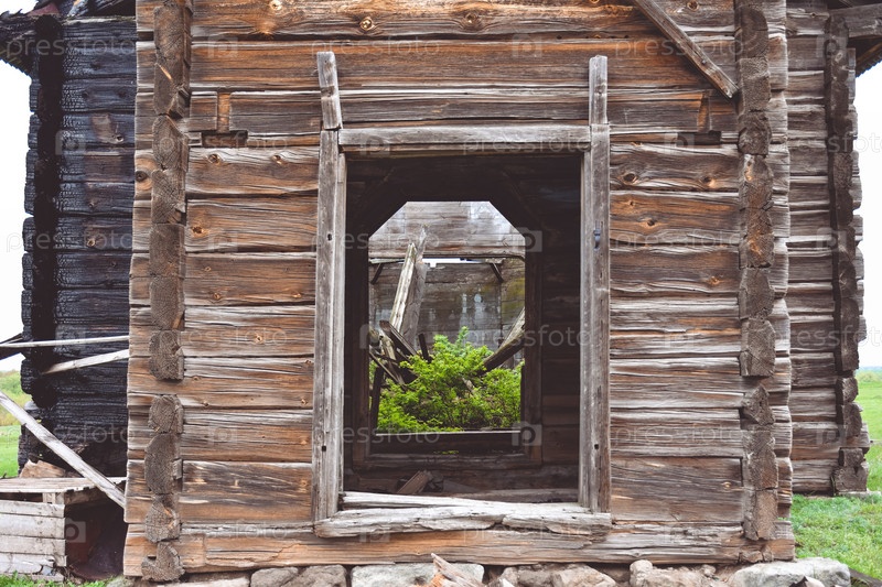 Деревянные стены заброшенной церкви, деревянный заброшенный храм