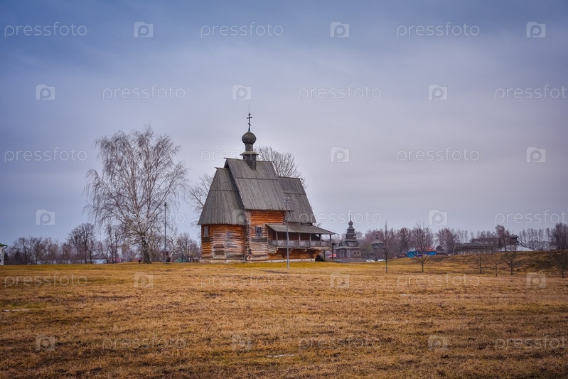 Суздаль / Россия - 07 марта 2020 г.: Никольская церковь из села Глотово на территории Суздальского Кремля