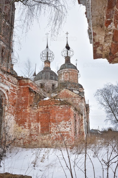 Дверь в заброшенной церкви, вход в заброшенный храм
