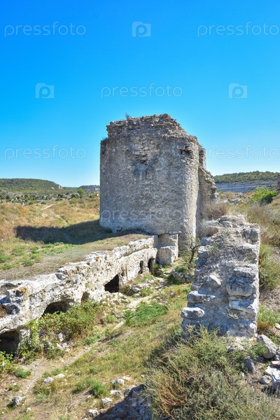 Руины крепости на холме, древнее здание
