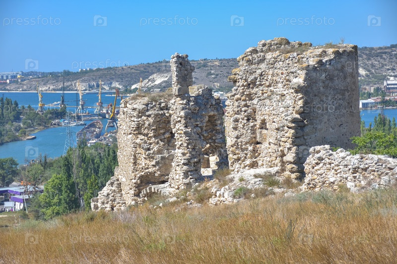 Руины крепости на холме, древнее здание