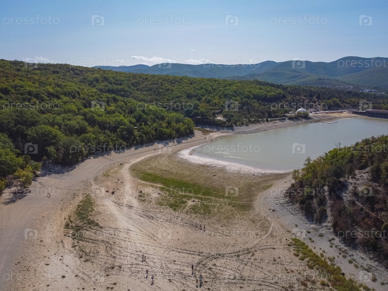 Вид с воздуха на горное озеро, окруженное елями, вид сверху на озера в лесистых горах