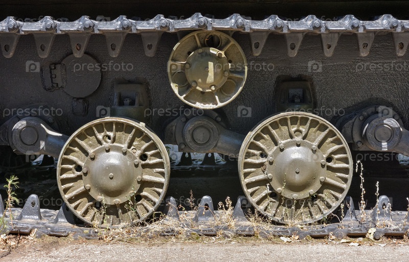 Танковые катки крупным планом, танковые гусеницы крупным планом