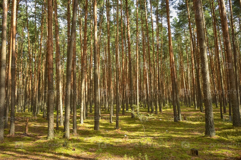 Сосновый лес, прогулка по лесу, стволы деревьев