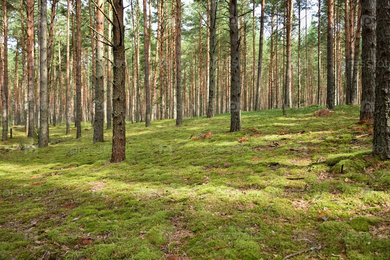 Сосновый лес, прогулка по лесу, стволы деревьев