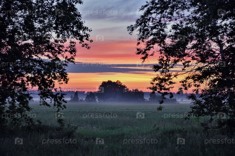 Рассвет туманное утро, утренний туман