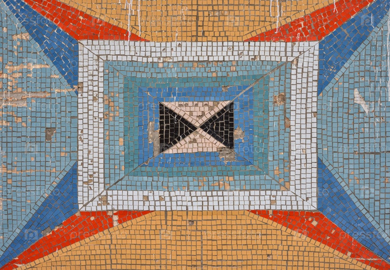 Цветная мозаика и квадратная плитка на старой стене. декоративная мозаика разных цветов