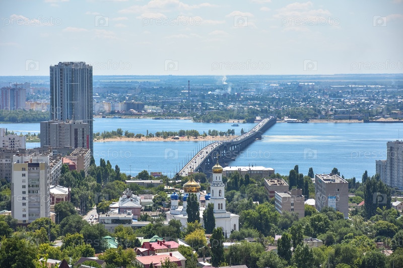 Саратов / Россия - 25 июля 2020 г.: вид на город Саратов и мост через реку Волга