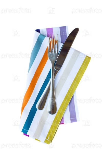 Нож и вилка на салфетке