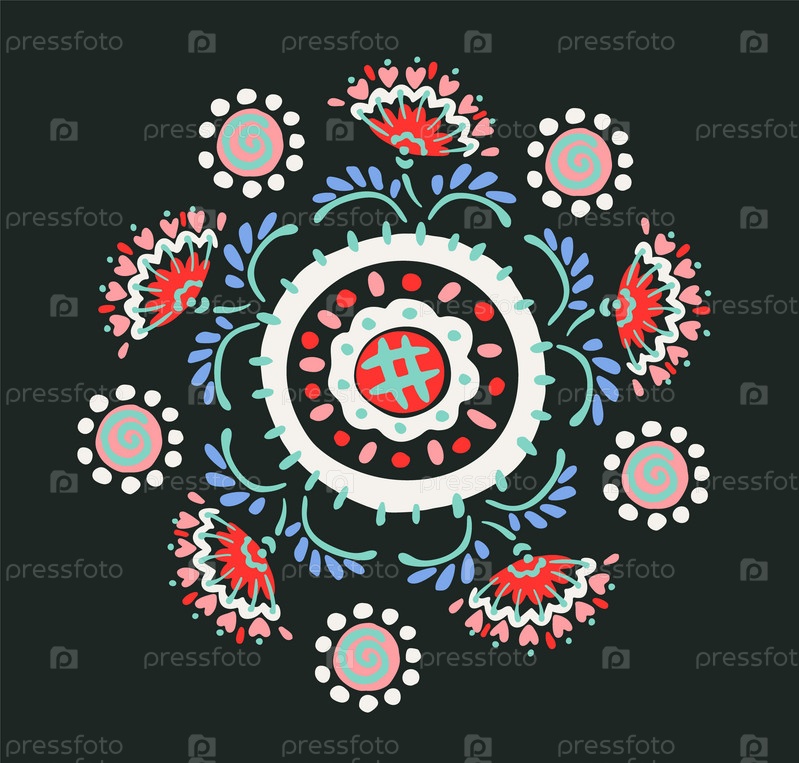 Набор этнических элементов. Бордюр представляет собой полосу с цветами, листьями, ветками, вензелями. Народная вышивка. Славянский, украинский, русский мотив. Хохлома, матрешка, дымковская игрушка. Мексиканский, индийский, цыганский ковер. Вязаное кружево
