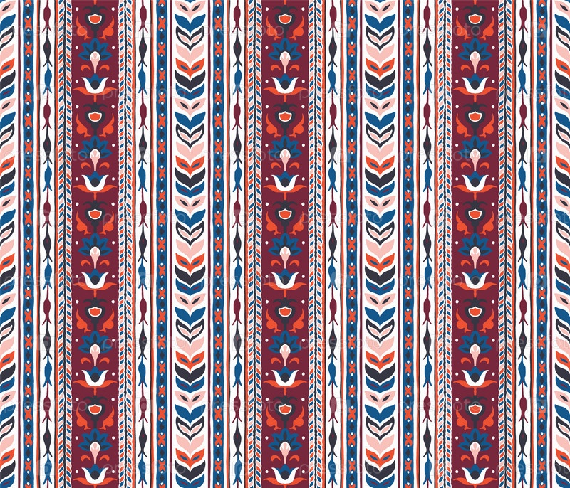 Геометрический дамасский орнамент. Икат границы. Этническая вышивка с листьями и монограммами. Племенная векторная текстура. Бесшовный народный узор в ацтекском стиле. Индийский, скандинавский, цыганский, мексиканский, африканский ковер
