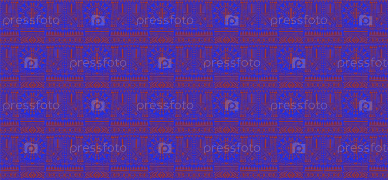 Племенной векторный орнамент. Бесшовный африканский узор. Этнический ковер с шевронами. Ацтекский стиль. Геометрическая мозаика на плитке, майолика. Древний интерьер. Современный ковер. Геопринт на ткани. Кенте Ткань