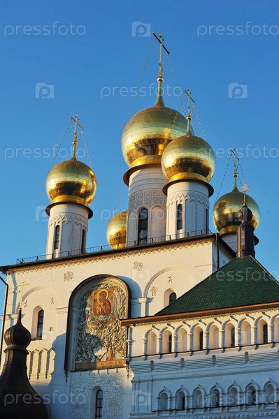 Золотые купола на рассвете храма Феодоровской иконы Божией Матери