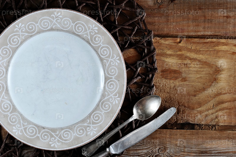 Пустой шаблон для пищевой композиции - тарелка, нож и ложка