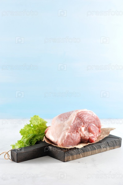 Кусок сырой свиной ветчины на деревянной доске