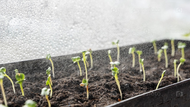Саженцы дыни в лотке, проросшие саженцы высаживают на черный лоток в теплице