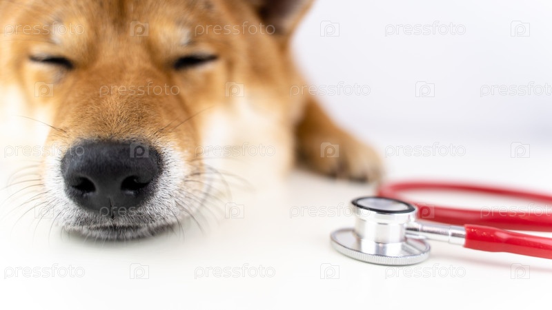 Собака на приеме у ветеринара со стетоскопом