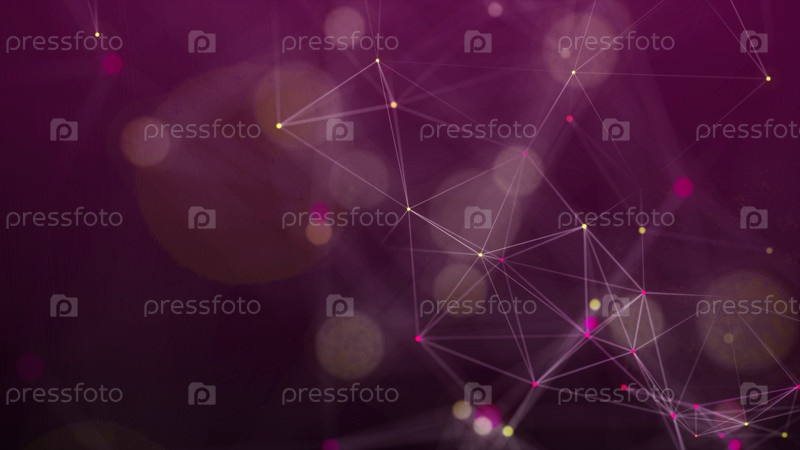 Визуализация больших данных. Понятие сетевого подключения. Абстрактный розовый фон с линиями и точками разных цветов. 3D-рендеринг