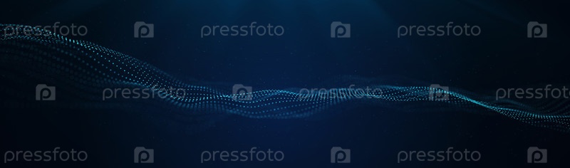 Технологический фон из потока цифровых частиц. Футуристическая светящаяся волна. Концепция больших данных. Подключение к сети. Кибернетика. 3D визуализация