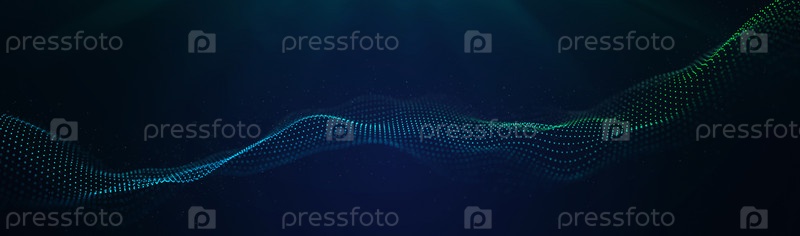 Технологический фон из потока цифровых частиц. Футуристическая светящаяся волна. Концепция больших данных. Подключение к сети. Кибернетика. 3D визуализация