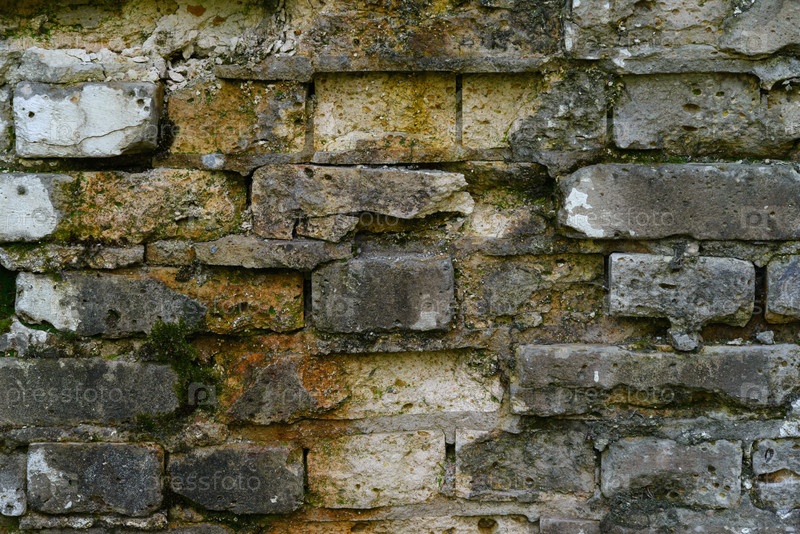 Рушащиеся кирпичи на фоне старой разрушенной стены