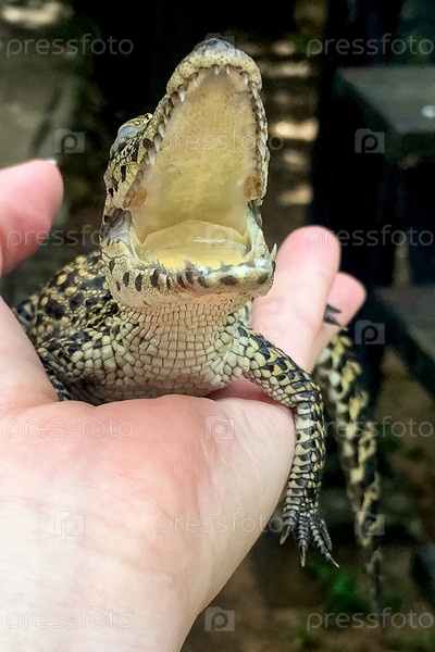 Детеныш крокодила в руках человека