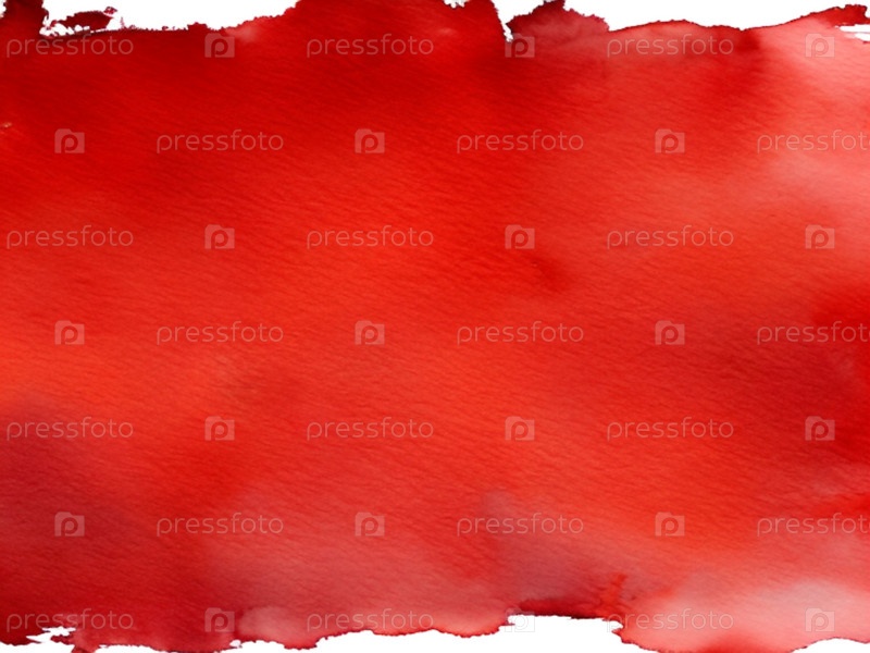 Абстрактный акварельный фон. Акварельные мазки на фактурной плотной бумаге для рисования. Красная краска, разбавленная водой