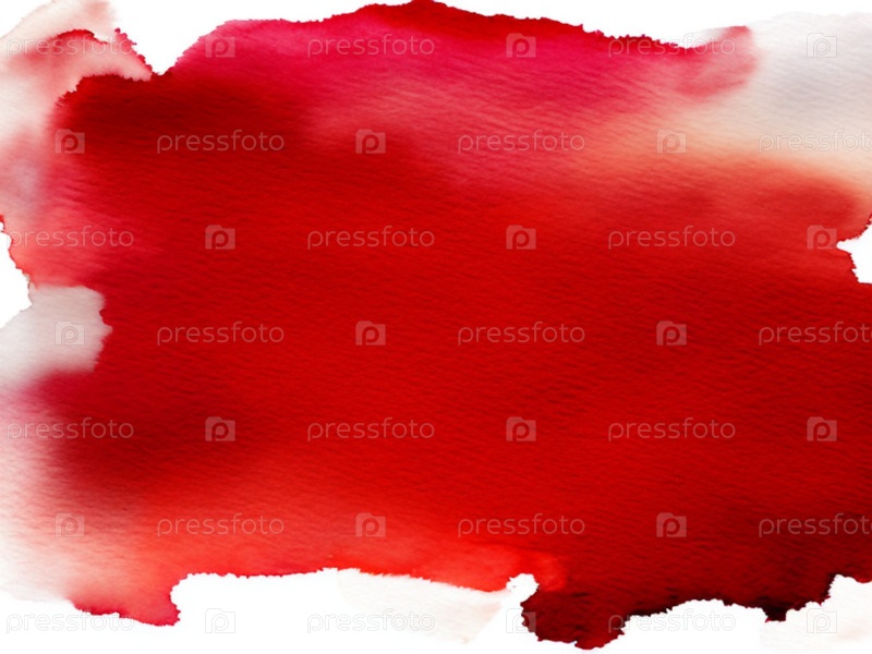 Абстрактный акварельный фон. Акварельные мазки на фактурной плотной бумаге для рисования. Красная краска, разбавленная водой