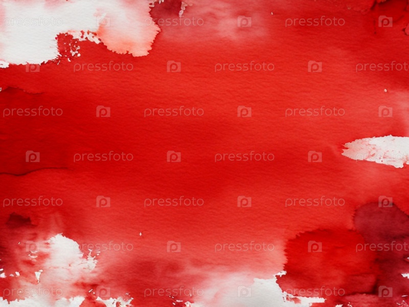 Абстрактный акварельный фон. Акварельные мазки на фактурной плотной бумаге для рисования. Красная краска, разбавленная водой