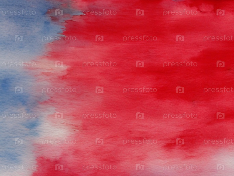Абстрактный акварельный фон. Акварельные мазки на фактурной плотной бумаге для рисования. Красно-синяя краска, разбавленная водой