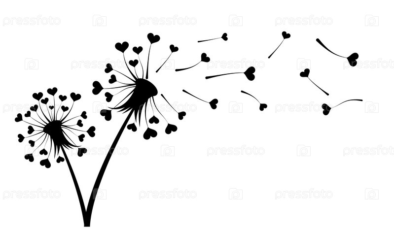 Стилизованный цветущий полевой одуванчик с сердцами
