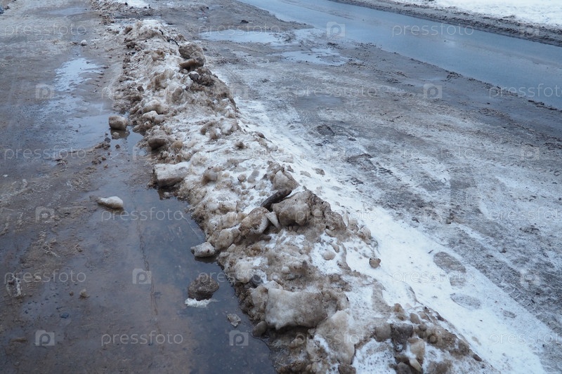 Снег, лед, слякоть и зимняя грязь на пешеходном переходе. Температура воздуха около 0. Сложные условия движения. Тормозной путь автомобиля. Правила дорожного движения. Инфраструктура и дорожные службы