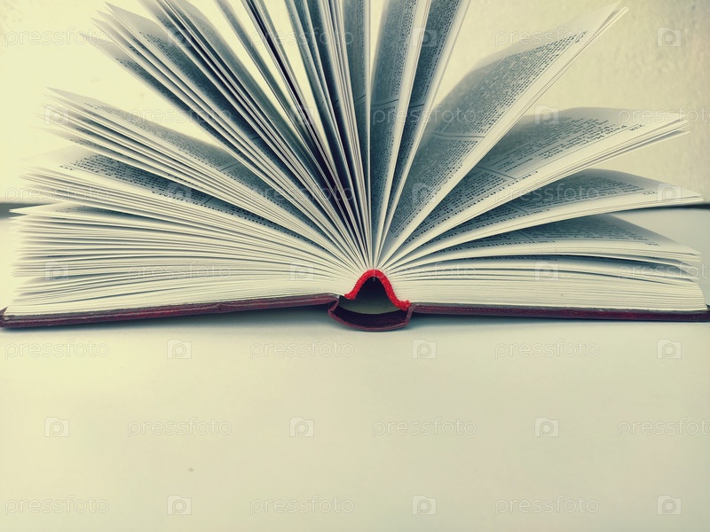 Раскрытая книга на белом столе