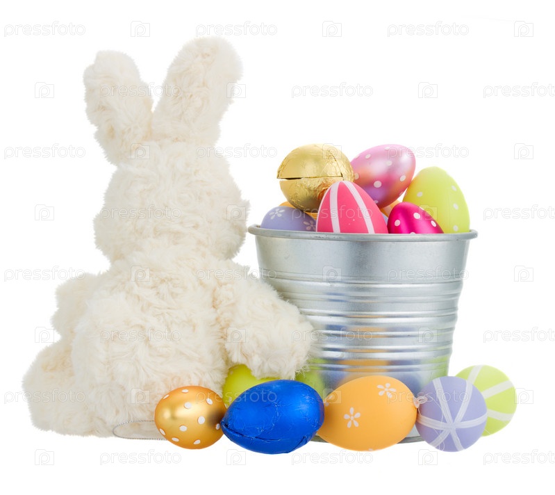 Игрушечный заяц с пасхальными яйцами
