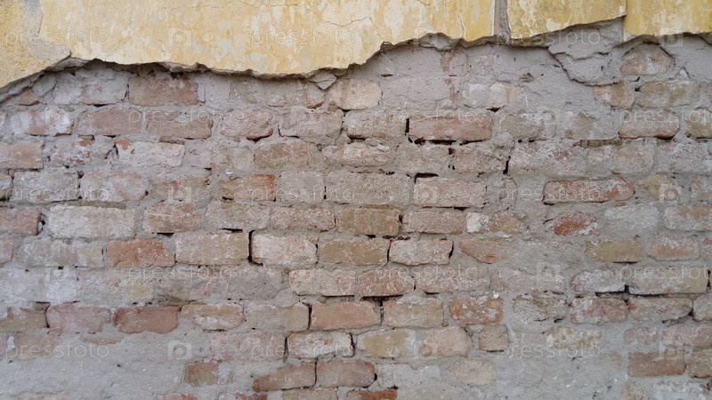 Старая облупившаяся штукатурка на кирпичной стене
