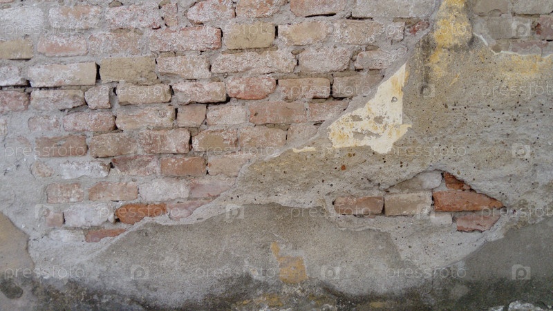 Штукатурка отслаивается от кирпичной стены. Старая изношенная кирпичная стена со штукатуркой