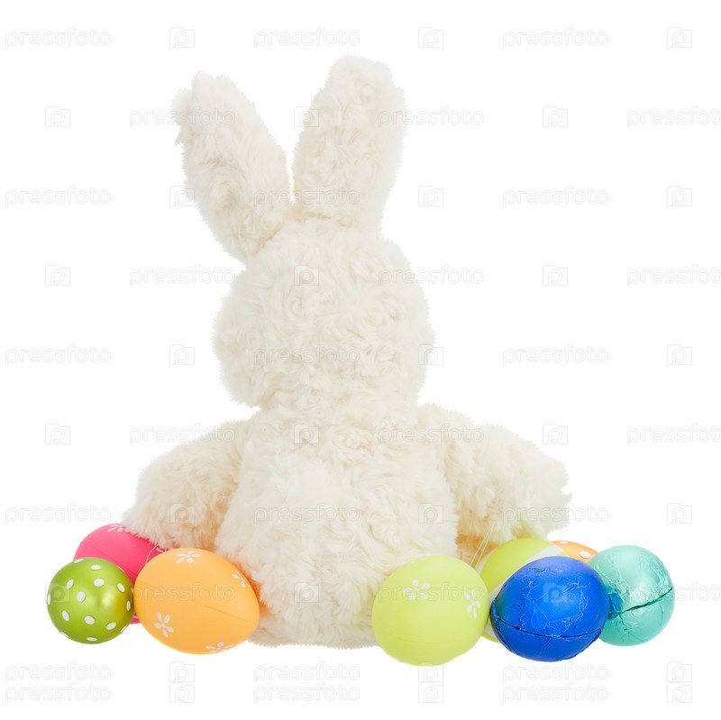 Игрушечный заяц с пасхальными яйцами