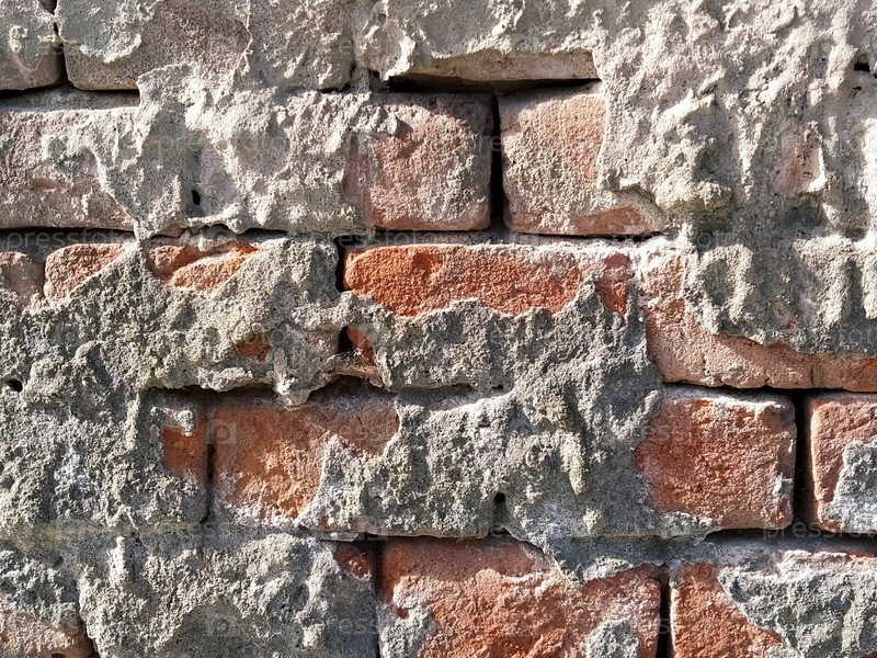 Стена из красного кирпича. Застывший цемент между рядами кирпичей. Старое здание, гранж или подземный фон