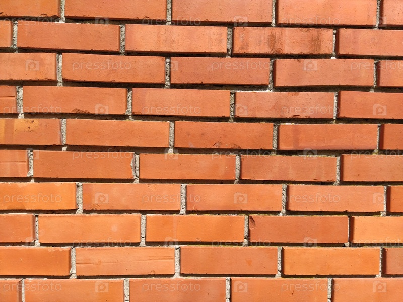 Стена из красного кирпича. Гладкие силикатные длинные кирпичи аккуратно выложены