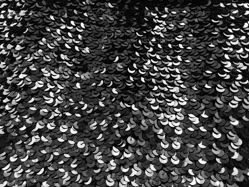 Ткань с пайетками. Черные пайетки с бело-серым блеском. Отражение света на отдельных элементах в хаотичном порядке. Шитье или рождественский декоративный фон