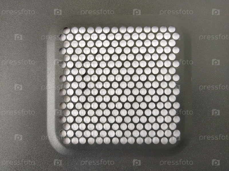 Вентиляционная сетка компьютера. Металлическая поверхность с круглыми многочисленными отверстиями