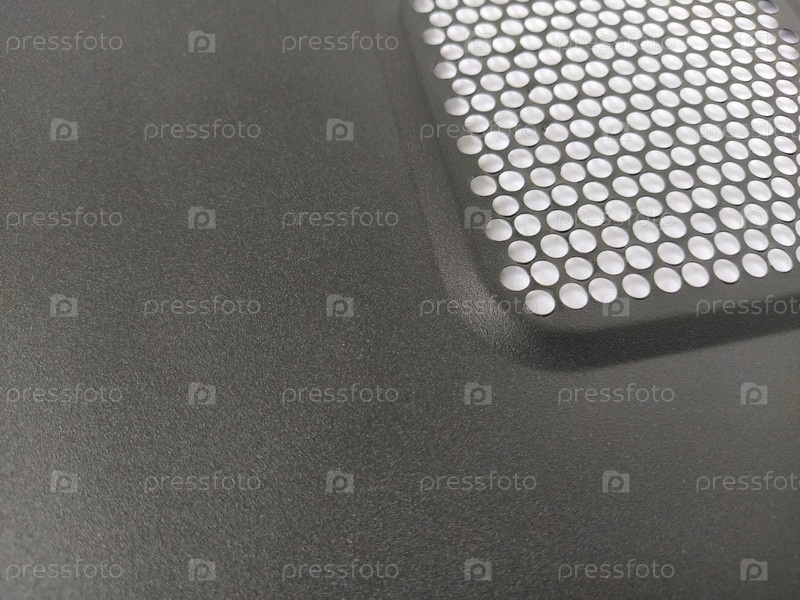 Вентиляционная решетка в комп. Металлическая поверхность с круглыми многочисленными отверстиями. Скопируйте пространство